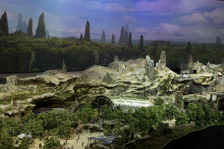 On Thursday at the D23 Expo 2017, Walt Disney Parks and Resorts Chairman Bob Chapek gave us the first look at the model of the Star Wars-themed lands that are curently being developed at the Disneyland park in Anaheim, Calif. and Disney’s Hollywood Studios in Orlando, Fla.