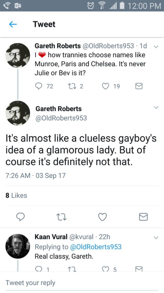 “I [love] how trannies choose names like Munroe, Paris and Chelsea. It’s never Julie or Bev is it?