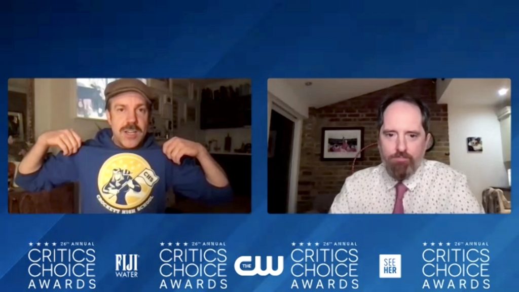 Ted Lasso was a big winner tonight with three wins for Best Comedy Series, Best Actor, and Best Supporting Actress (Hannah Waddingham). It wasn’t a complete comedy sweep in television comedy since nobody was up for Best Actress. However, the series, which premiered in August 2020, won all three awards they were nominated for. Ted Lasso was quickly renewed for a second season. In October, Apple TV renewed the series for a third and final season. Following the Best Comedy Series win, Sudeikis and co-creator/star Brendan Hunt took to the winner’s press room on Zoom.