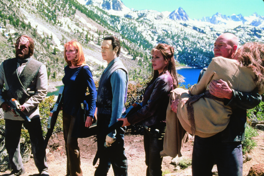 CAST: Patrick Stewart, Jonathan Frakes, Brent Spiner, LeVar Burton, Michael Dorn, Gates McFadden, Marina Sirtis, Alfre Woodard, James Cromwell, Alice Krige