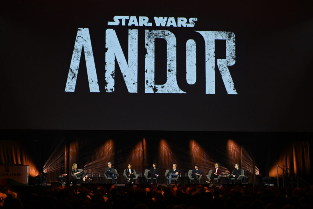 Taking place at the ExCel London Convention Center, Friday’s activities on the Celebration Stage began with host Ali Plumb welcoming Lucasfilm’s Kathleen Kennedy to reflect on the success of the highly acclaimed Disney+ original series Star Wars: Andor. They were joined by the series’ director/creator/showrunner Tony Gilroy and stars Diego Luna, Adria Arjona, Kyle Soller, Denise Gough, Genevieve O’Reilly, Andy Serkis, Muhannad Bahair and Joplin Sibtain, who was accompanied by droid B2EMO. Fans were treated to an exclusive first look at the second and final season, which is currently in production and chronicles the next steps in Andor’s journey as he fights to assemble a fledgling resistance. Kennedy, Tony Gilroy, Sanne Wohlenberg, Diego Luna and Luke Hull are executive producing the upcoming season exclusively for Disney+.