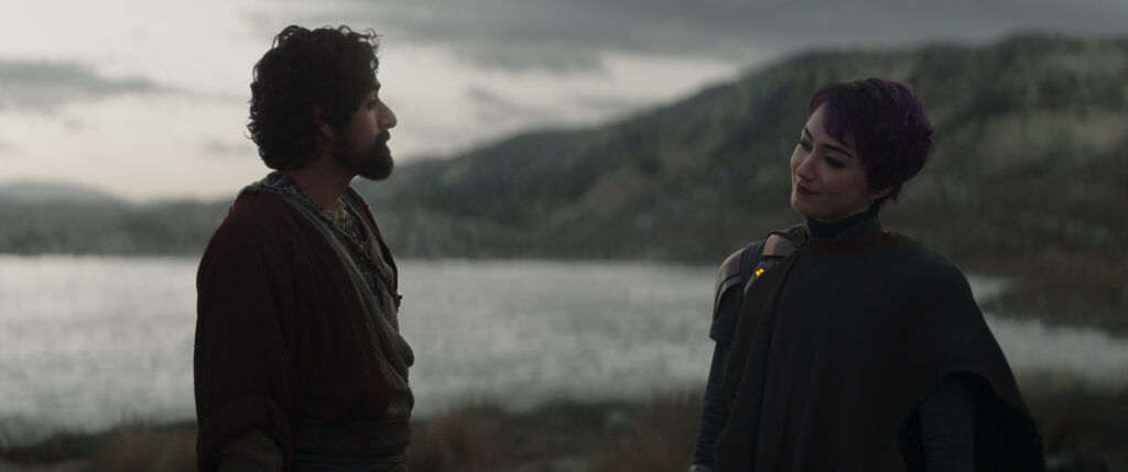 Elsewhere on the planet, Sabine lets Ezra know what he’s missed through the years. Meanwhile, Baylan Skoll (Ray Stevenson) and Shin Hati (Ivanna Sakhno) are on their tail and have different agendas. Baylon sends Shin to face off against both Ezra and Sabine. He chooses to stay put. Meanwhile, Ahsoka reaches out through the Force to find Sabine and she looks just like Leia when Luke reaches out in The Empire Strikes Back. Ahsoka eventually battles him but you have to wonder what his agenda is now that he’s helped Morgan Elsbeth (Diana Lee Inosanto) find Thrawn. I’m not quite sure what it is but it appears that Baylan and Shin have split up following their fight. Maybe Ahsoka coming back from the dead had something to do with it?