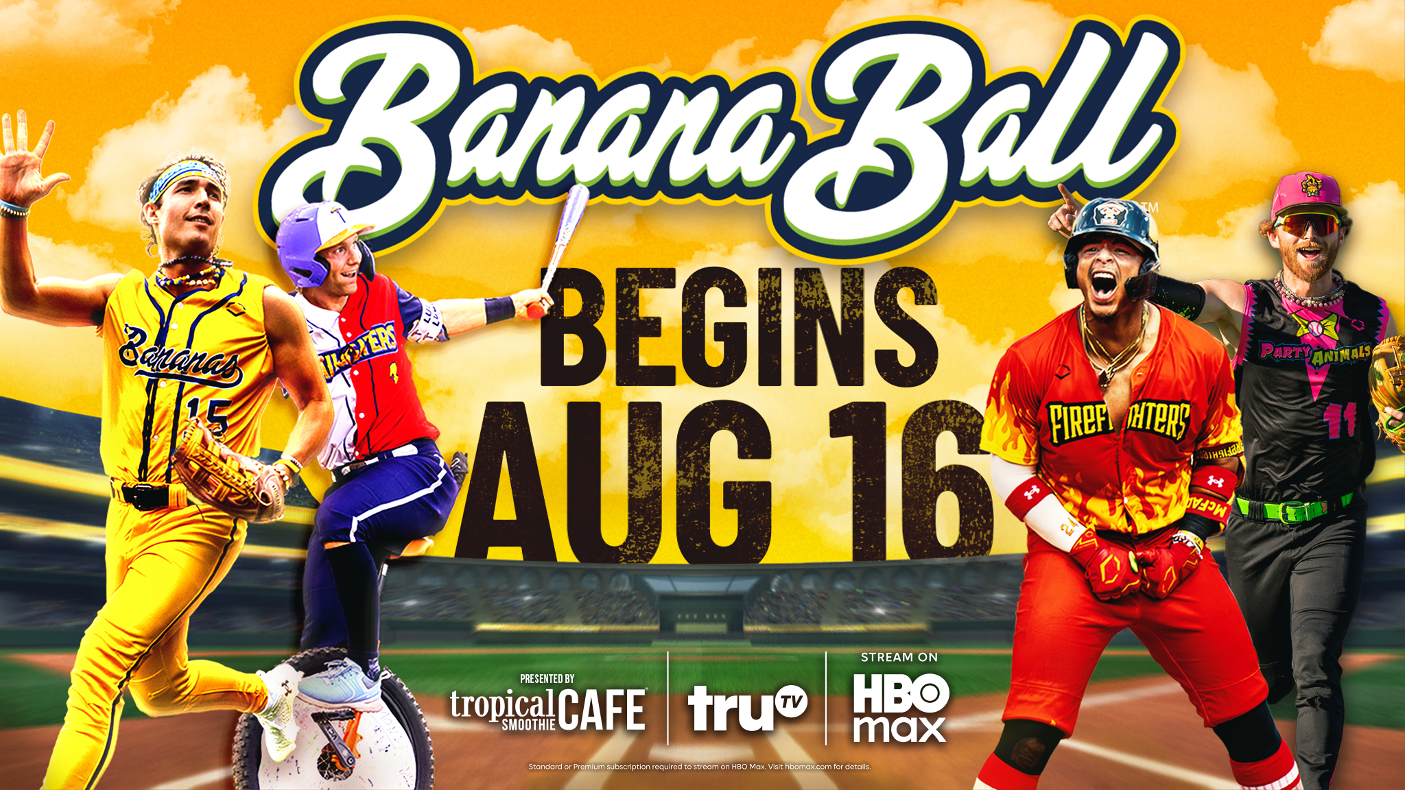 Banana Ball joins truTV’s expanding offering of primetime sports programming, which centers on live games and event coverage of MLB, the NHL, the NCAA, the Big 12 and the BIG EAST, U.S. Men’s and Women’s National Soccer, Unrivaled, NASCAR, Roland-Garros, and more. The network also presents an assortment of culturally relevant and entertaining sports content throughout the year, including unscripted competitive shows such as Wipeout, featured sports movies and documentaries, scripted series (including the network premiere of Ballers this week), classic matches from HBO Boxing, among others.
